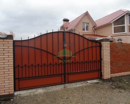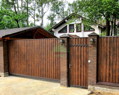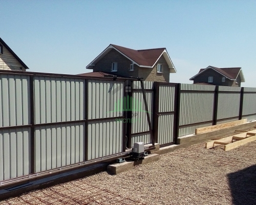 Откатные ворота, кирпич для столбов и все сопутствующие материалы для ленточного фундамента доставляются отдельно.